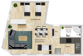 Wohnung: stark abhängig von Länge des Aufenthaltes und Anzahl der Personen
